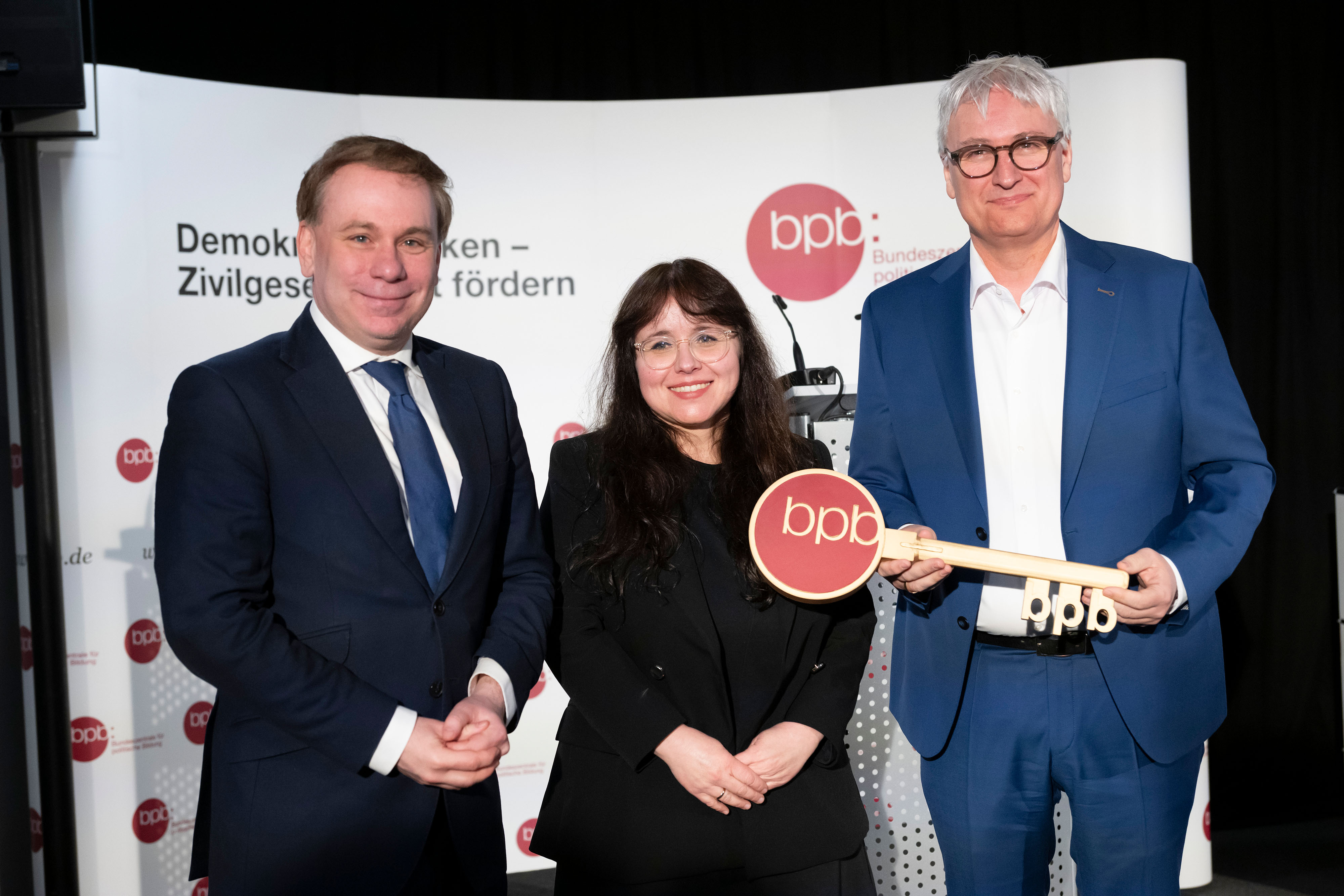 Vizepräsident Dr. Volker Ullrich, Cemile Giousouf und Präsident Sönke Rix. (© bundesfoto/Frank Sonnenberg)