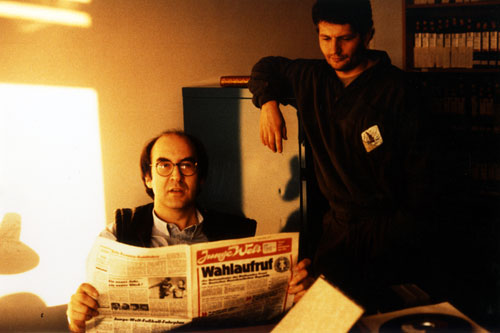 Roland Jahn (r.) und Peter Wensierski (l.) 1989 in der "Kontraste"-Redaktion des Senders Freies Berlin (SFB). (© Robert Havemann Gesellschaft)